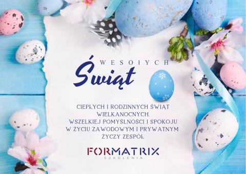 Życzenia Wielkanocne Życzenia Wielkanocne 15-04-2022 Szanowni Państwo, Zespół Formatrix pragnie życzyć Państwu zdrowych, spokojnych Świąt Wielkanocnych!